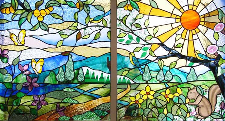 ステンドグラス森の風景と動物
