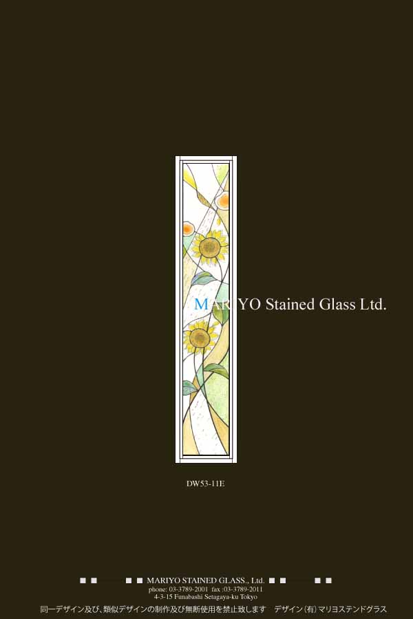 ヒマワリのステンドグラスデザイン画 作品No-DW53-11E △