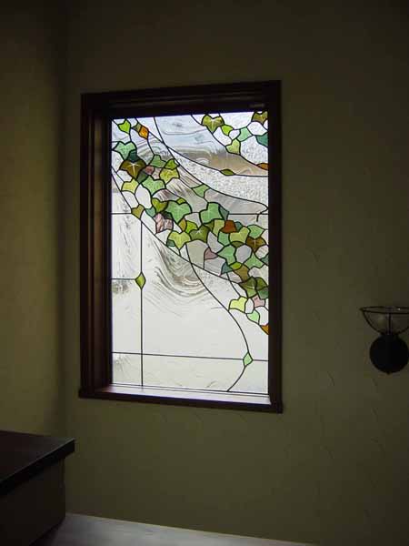 横浜の静かな住宅街「美しが丘」の家に施工した「蔦のステンドグラス」です