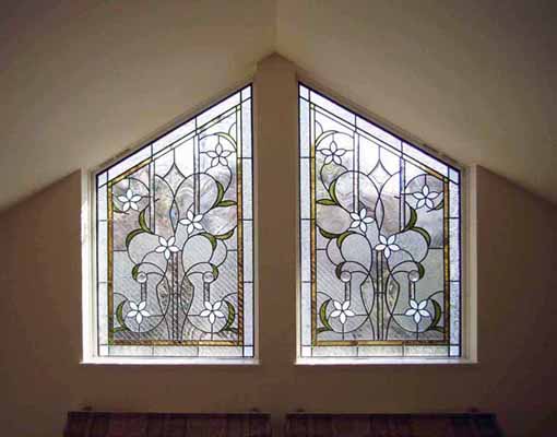 白い花のステンドグラス 勾配天井施工例 杉並区
