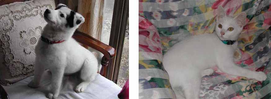 ステンドグラスと犬のハニーと猫のクララに囲まれて