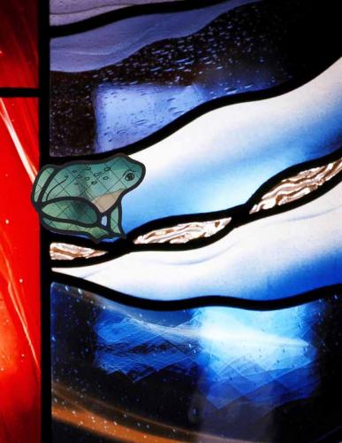中野区立宮の台児童館/ステンドグラス蛙部分  マリヨステンドグラス制作