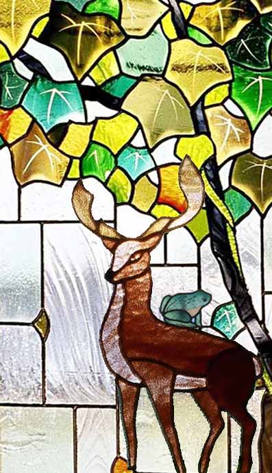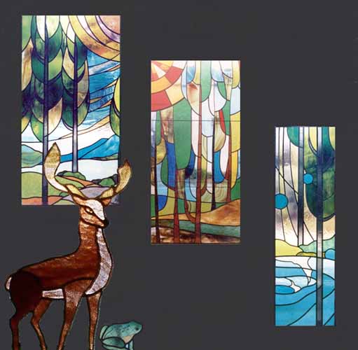 個人住宅 階段のステンドグラスパネル 「森の風景-湖畔」東京都新宿区
