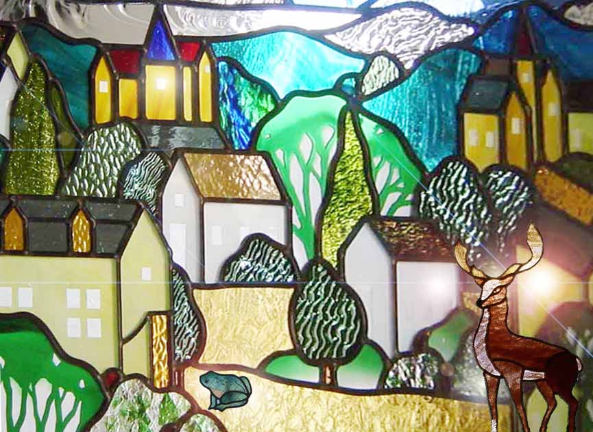 神奈川県座間市 個人住宅 古城邸のステンドグラス 「メルヘンの街」