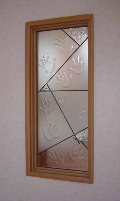 21 1月 2008 手の跡がいっぱい エッチンググラス 子供(孫)の 手の形 by mariyo | posted in: シンプル | 0 ある日、Sさんご夫婦が、コーディネーターの方といっしょに工房に来られました 「可愛い五人のお孫さんの手を、現在新築中の住まいに末永く残したい」と 5枚の手の輪郭を描いた絵を持ってこられました。 手はいろんなもの作ることできるから 手の跡がいっぱいある家って いいな〜! ステンドグラス エッチング 子供の手の形 A10-5E 千葉県長生郡 ステンドグラス デザイン・制作・施工 (有)マリヨステンドグラス