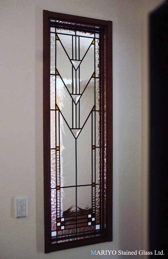 色を余り使わない フランク・ロイド・ライト調のステンドグラスが