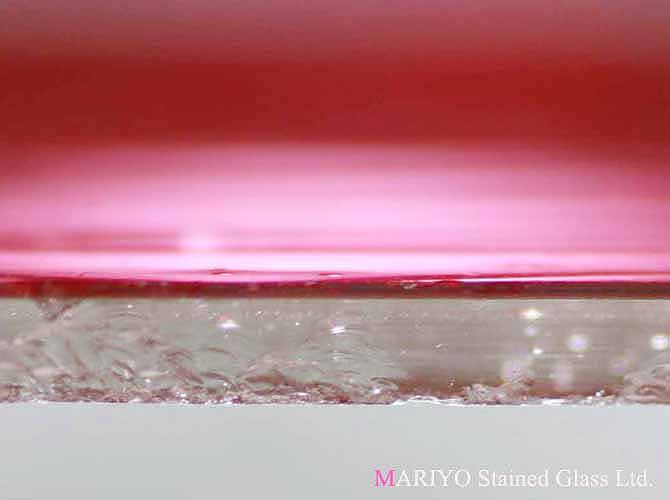 被せガラスは、硝子が溶けている段階(溶解)で 複層に重ね合わせて溶着させてありますから、接着剤や中間膜等は使っていません