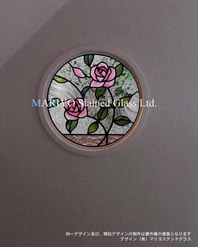 小さな丸窓に ばらのステンドグラスを施工しました。
