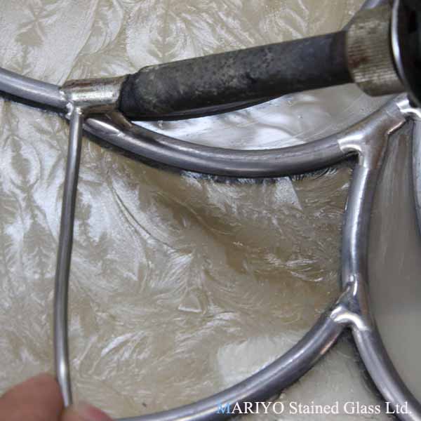 細かな細工のステンドグラスは、全面半田のほうが綺麗な仕上がりになると