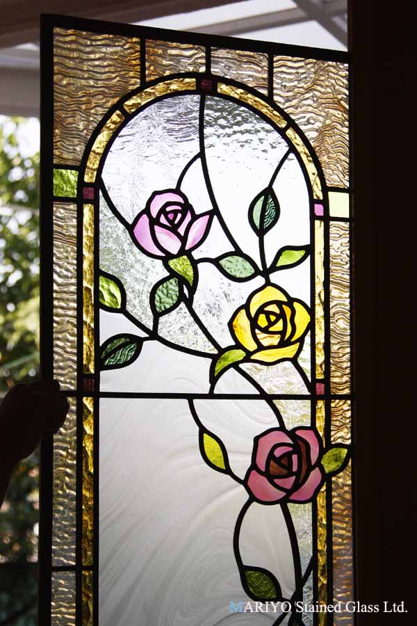 15 7月 2009 ステンドグラス バラ アーチ型のデザインで by mariyo | posted in: バラ ブドウ, 花 | 2 ピンクと黄色のバラのステンドグラス 完成 背景のガラスは、見えにくいようにタペ加工しました 斜めからのアングルで写真を撮ると、ガラスのテクスチャーが綺麗でした 施工写真が上手く撮れたら、近日中にアップします 寸法 430W×1820H 技術 鉛線(ラウンド型ケイム)組みステンドグラス 特殊 被せガラスエッチング ステンドグラス制作専門工房 (有)マリヨステンドグラス MARIYO Stained Glass Ltd. ステンドグラス作家 小林一夫
