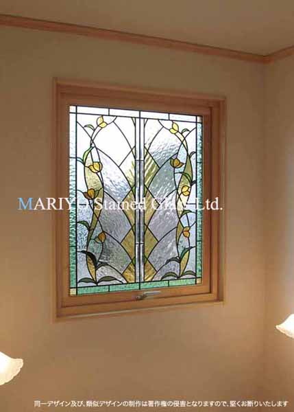 茨城県のSさんの家の窓に 花のステンドグラスを取り付けました。