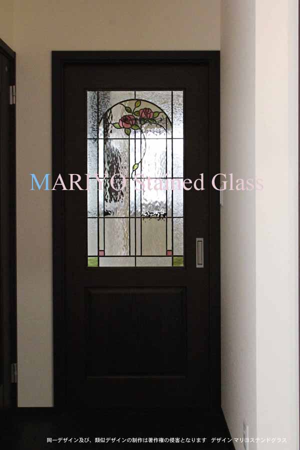 片引戸のガラスを、バラのステンドグラスに交換しました。