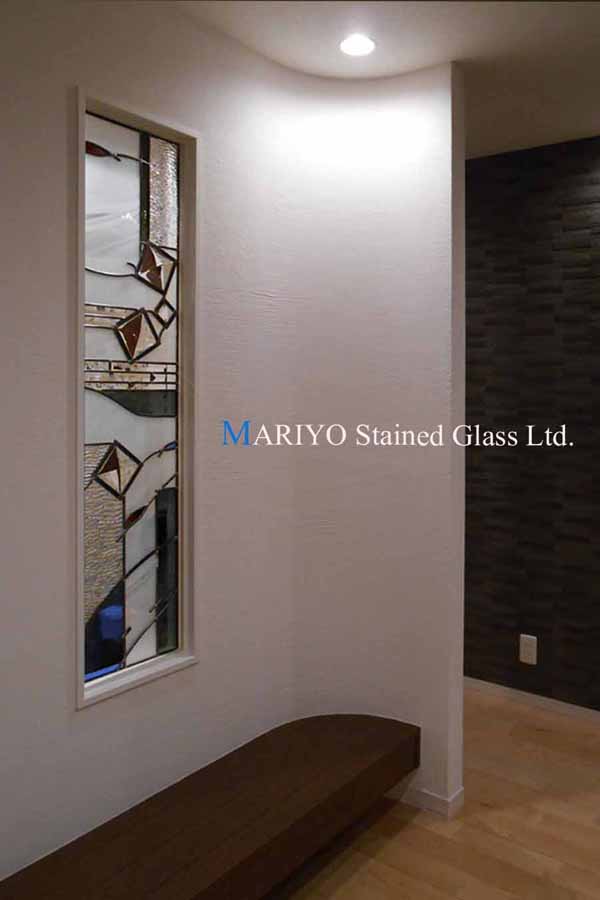 立体ガラス シャフラを使ったモダンなデザインのステンドグラスです。