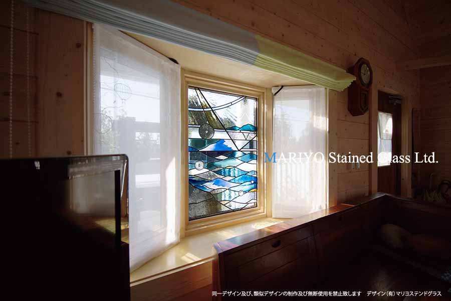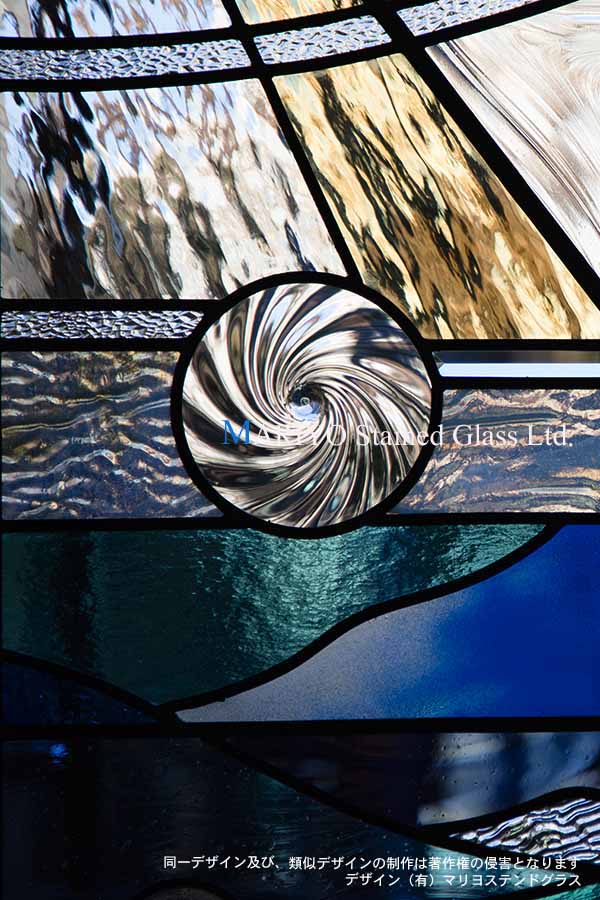 美しいガラスを使った、海のデザインのステンドグラス施工例です。