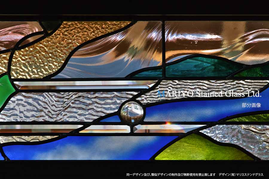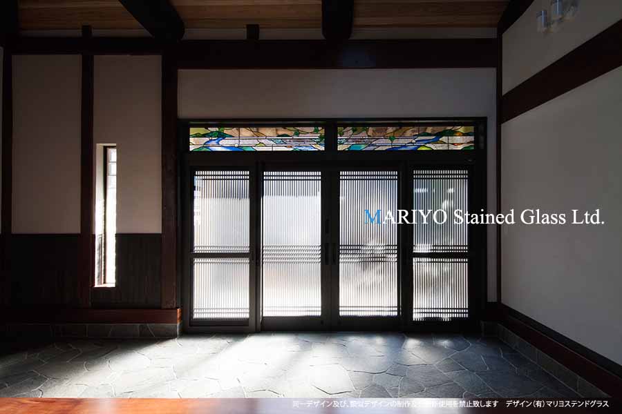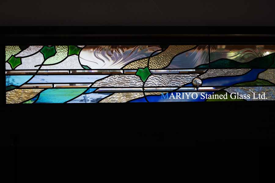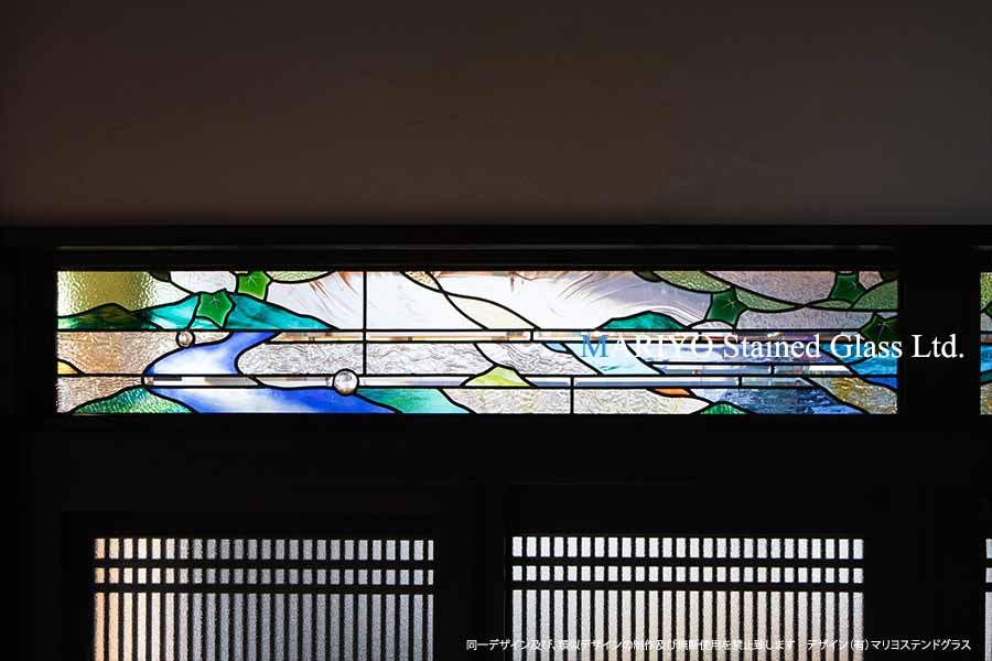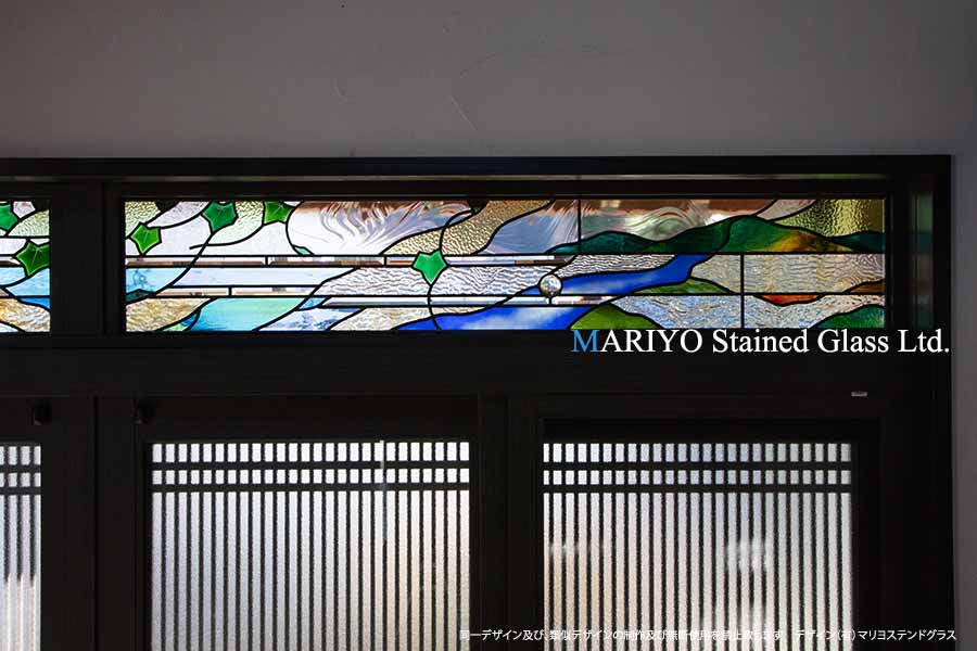 欄間(ランマ)に設置した風景デザインのステンドグラスです。