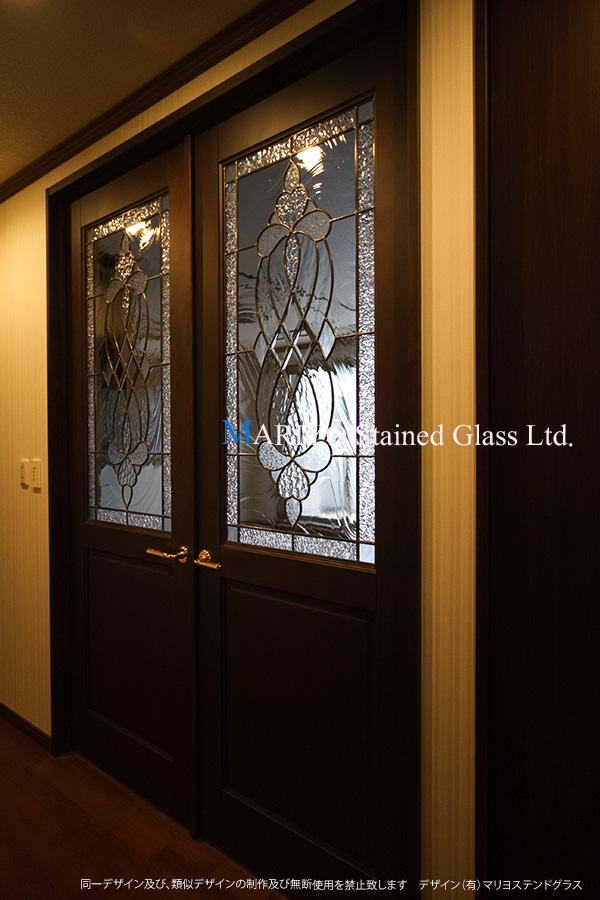 埼玉県さいたま市の住宅に設置した曲線図案のステンドグラス。