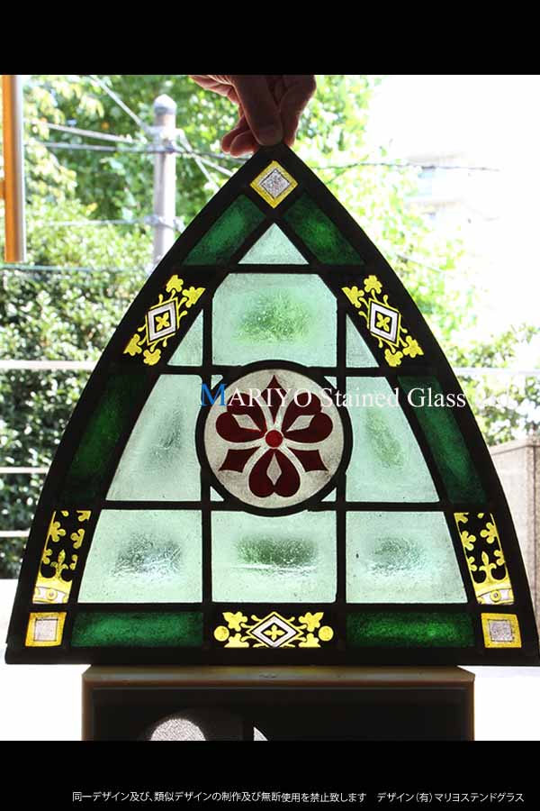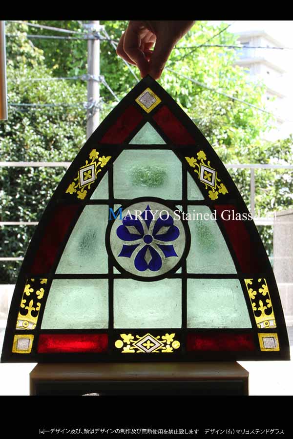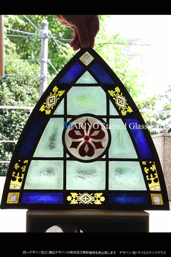 尖頭アーチ ランセット型をした紋章(家紋)デザインのステンドパネルです。