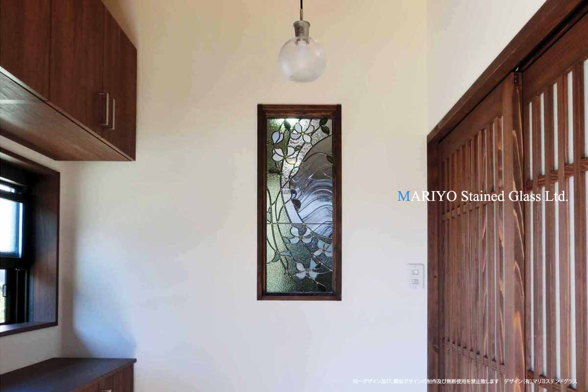 「終の棲家」として建てられた雑木の庭のある家の玄関正面のステンドグラスです。