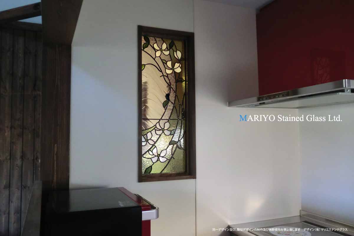京都にお住まいのM様からのご注文で制作した ハナミズキのステンドグラスです。