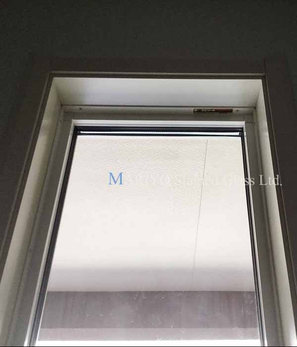 取り付け方法は、サッシ窓枠に同系色に塗装した押縁で挟み込んで固定しています。