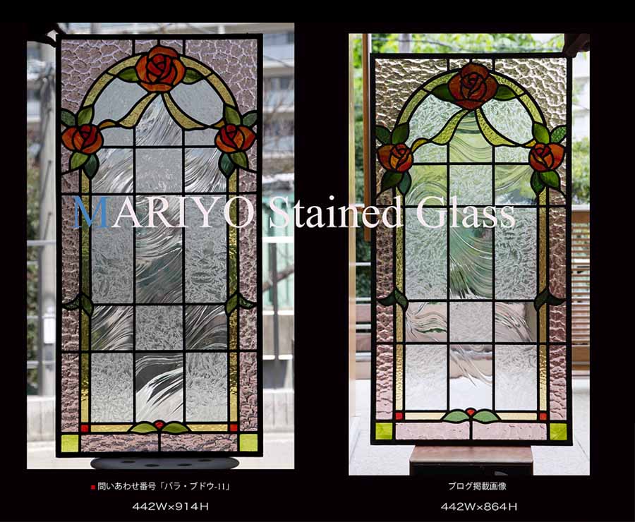 左の画像は ホームページ掲載のバラのステンドグラスを工房で撮影した画像です。
