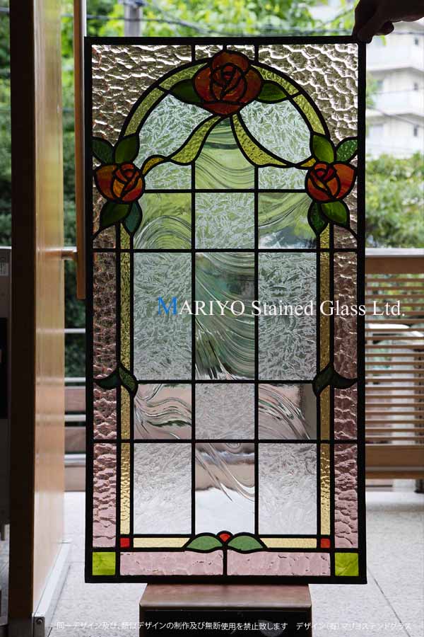 栃木県のS様宅に納品したバラ図案のステンドグラスパネルです。